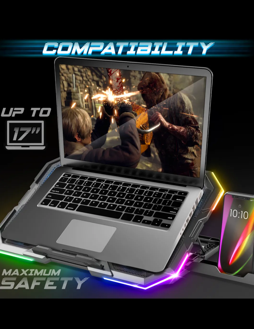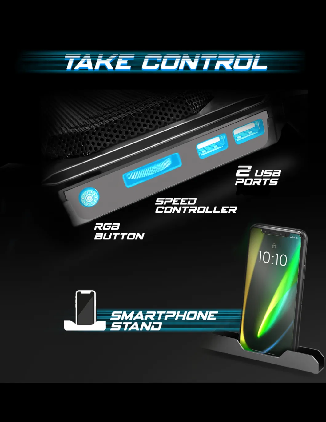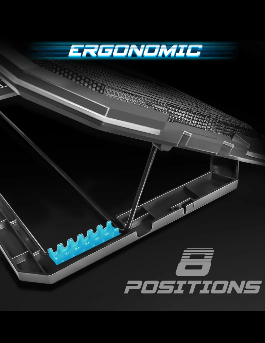 Refroidissement Optimal : 6 Ventilateurs Led Bleu Silencieux Refroidissent Rapidement Votre Pc Portable Pour Des Sessions De Jeu Toujours Plus Intensives ! Grace A Son Revetement En Alliage Metallique Micro-Perfore, Airblade Optimise La Dissipation De La Chaleur Pour Un Refroidissement Maximal.Prenez Le Controle : Airblade Est Equipe D’Un Variateur De Vitesse. Il Vous Permet D’Allumer Et De Faire Varier Les 6 Ventilateurs. Cote Design Airblade Dispose D’Un Retro-Eclairage Rgb 10 Modes De Son Contour. (Couleurs : Rouge, Vert, Bleu, Turquoise, Violet / Rgb : Cycle, Flash, Rainbow, Flow, Breathing)Ergonomique : Airblade Offre Un Veritable Confort Visuel Et Evite Les Postures Inconfortables Et Douloureuses Avec Ses 8 Positions Reglables. Ajustez L’Inclinaison Selon Vos Besoins De 10° A 30°. Cote Securite, Le Plateau De Dissipation En Alliage Metallique Est Equipe De Dispositif Antichute. Compatible De 10 » A 17 » : Avec Son Systeme De Ventilation Performant, Airblade Permet Egalement De Preserver Les Performances Et La Duree De Vie Des Composants Informatiques De Votre Ordinateur Portable De 10 A 17 ». Il Est Meme Plebiscite Pour Refroidir Les Consoles De Jeux Playstation, Xbox…Efficacite Maximum : Airblade Est Alimente Par Votre Ordinateur Portable Via Le Port Usb (5V) : Il Ne Necessite Pas D’Adaptateur Electrique. Un Autre Port Usb Est Inclus Pour Connecter Differents Peripheriques, Comme Une Souris Spirit Of Gamer Par Exemple !