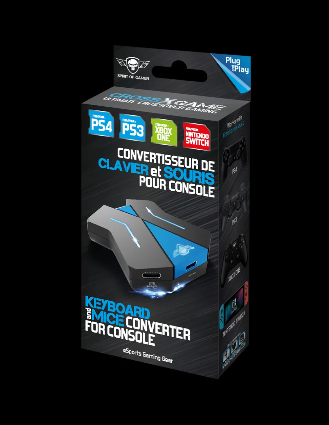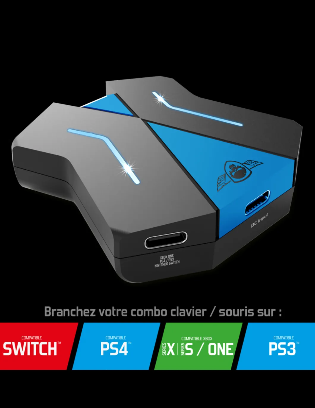 Convertisseur Utilisez N’Importe Quel Clavier Et Souris Sur Votre Console Playstation 4, Playstation 3, Xbox Series X|S, Xbox One Et Meme Votre Nintendo Switch.Joueurs Pc : Crossgame Vous Permet De Connecter Vos Peripheriques : Clavier, Souris Afin De Rejoindre La Communaute Des Joueurs Consoles.Joueurs Consoles ! Vous Aussi, Vous Pouvez Tous Simplement Avoir Envie De Tester Une Configuration Clavier, Souris Pour Augmenter Vos Competences De Jeux 😉 Crossgame 2 Est Ideal Pour Les Jeux De Fps Comme Fortnite, Pubg, Call Of Duty, Battle Field, Overwatch … Etes-Vous Pret Pour Un Top 1 Game On !Programmable : Par Defaut, L’Attribution Des Touches De Votre Manette Est Deja Predefinie Pour Que Vous Puissiez Profiter De Votre Clavier Et Votre Souris Sur Votre Console. Cependant, Vous Pourrez Egalement Telecharger Le Logiciel Sur Votre Pc Afin De Configurer Les Touches Comme Bon Vous Semble Sur Les Plateformes De Votre Choix (Ps4, Switch, Xbox One, Ps3) Et Vous Pourrez Meme Ajuster Sensibilite De La Souris.Design Compact Et 100% Gamer : Crossgame Beneficie D’Une Connectique Complete Qui Vous Permet De Brancher Vos Devices Afin De Jouer A Tout Type De Jeux. Son Design Bleu Mana Compact Vous Permettra De Le Transporter N’Importe Ou.