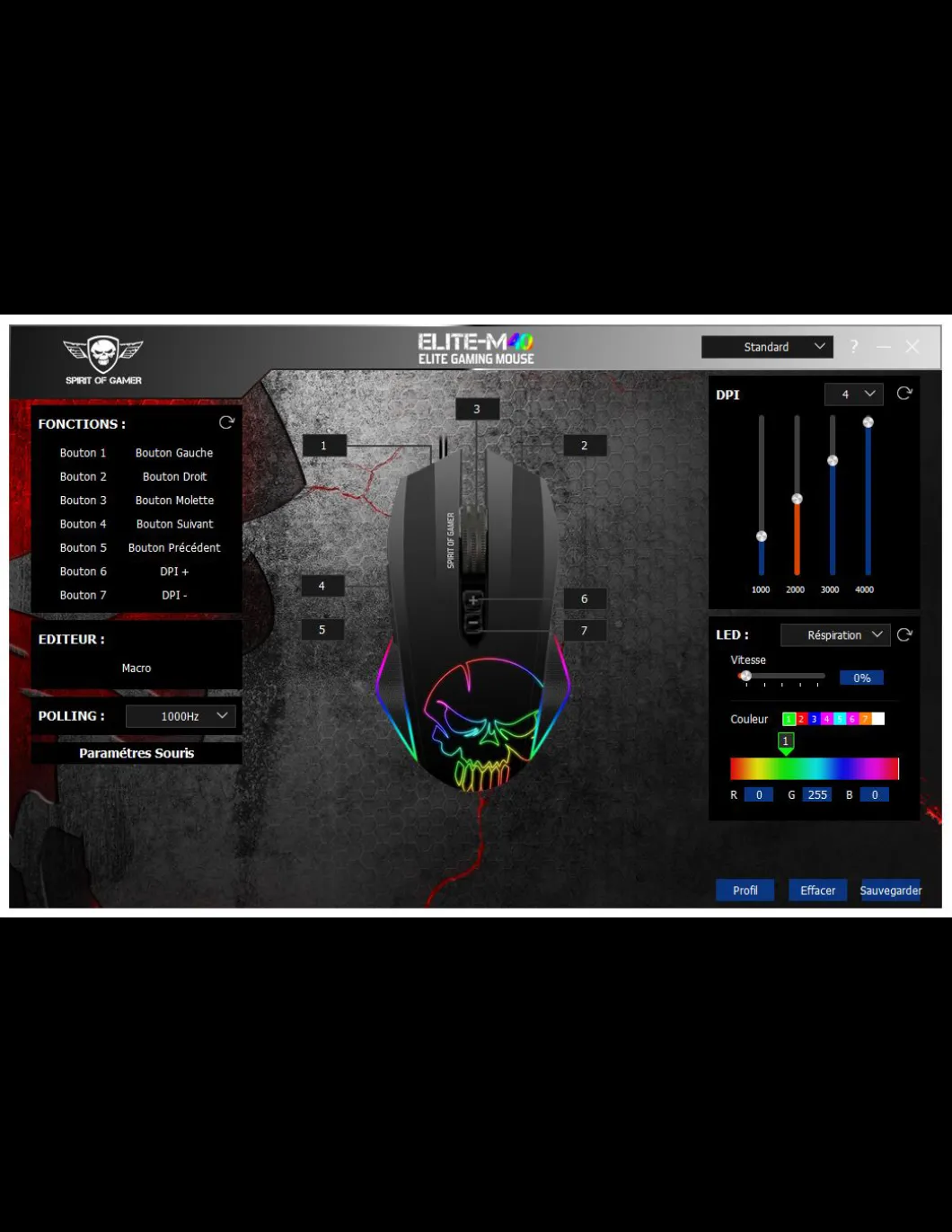 Skullllll Grace A La Souris Elite-M40 Skull Edition Vous Avez A Votre Disposition Une Arme Redoutable Pour Vaincre Vos Adversaires : Capteur Optique Avago 4000 Dpi, 7 Boutons Programmables Et Retroeclairage Rgb Personnalisable Attendent Votre Dexterite Et Votre Science Du Combat.Bullet In The Head ! Son Capteur Optique Avago 4000 Dpi Est Capable De Gerer Des Accelerations 20 G, Pour Une Precision Extreme Lors Des Phases De Jeu Les Plus Intenses. La Resolution Est Reglable A La Volee Sur Plusieurs Niveaux, Il Ne Vous Reste Plus Qu’A Parametrer Le Nombre De Niveau Et La Sensibilite Souhaitee.Skullllll Pour Correspondre Parfaitement A Votre Personnalite, Elite-M40 Integre Un Retro-Eclairage Rgb Parametrable. Optez Pour L’Une Des 7 Couleurs Ou Choisissez Votre Couleur Unique. Gerez Egalement La Luminosite Ou Optez Pour Le Mode Pulsation. Admirez Le Skullllllllllll Rgb 🙂 Logiciel Intuitif : Grace Au Logiciel Dedie, Vous Pourrez Sauvegarder Plusieurs Profils Differents En Fonction De Vos Besoins. L’Interface Permet De Gerer Le Role De Chaque Bouton (Jusqu’A 13 En Mode Shift), La Resolution Du Capteur Et Bien Evidemment Le Retro-Eclairage.Avec Steel : Prise En Main Ergonomique Palm, Claw, Fingertip, Elite-M40 Vous Assure Un Confort Absolu, Notamment Avec Ses Bandes Texturees En Silicone Gripcontrol, Sa Molette Et Ses Patins En Metal Ultra Design. Son Design Symetrique Est Ideale Pour Les Gauchers Et Les Droitiers.