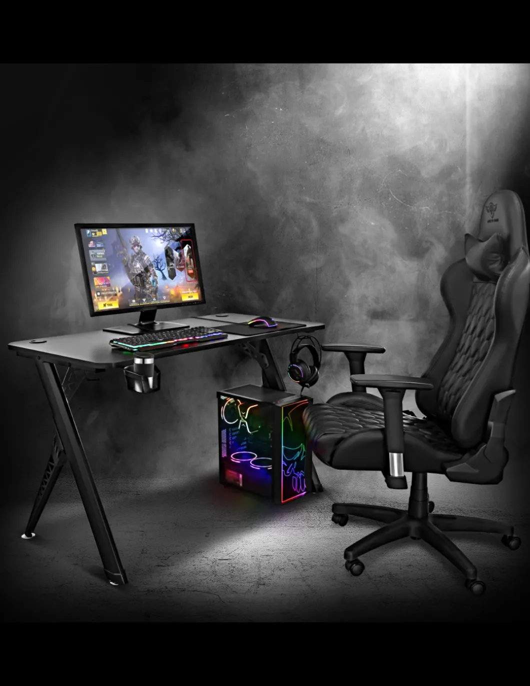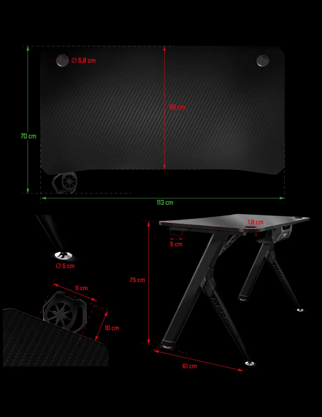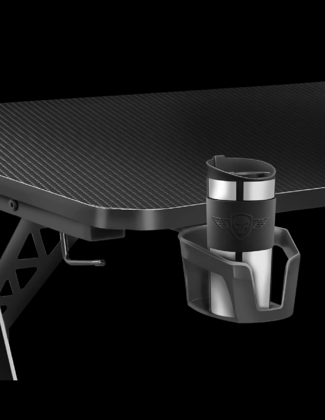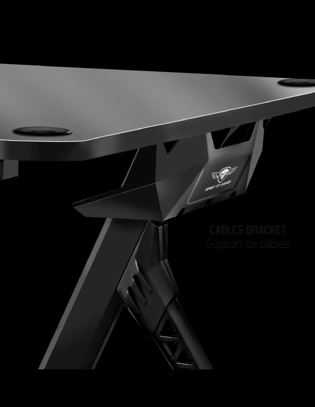 Nouveaute ! Le Nouveau Bureau Gaming Headquarter 200 Offre Une Finition Design Et Solide Pour Accueillir Votre Setup. La Surface De Son Plateau Avec Son Revetement Carbone De 113 Cm * 60 Cm Est Suffisamment Grand Pour Disposer 1 A 2 Ecrans. Votre Nouveau Qg Recevra Facilement L’Integralite De Votre Setup : Clavier, Souris, Casque Et Meme Votre Micro Pour Streamer Vos Parties.Structure Design : L’Architecture De Ses Pieds Et Des Equerres De Renfort Ajouree Ne Sont Pas S’En Rappeler Celle De La Dame De Fer : Un Design Indemodable Et Industriel.Gaming Arena : Votre Casque Sera Toujours A Portee De Main Grace Aux Support Inclus Et Pas Seulement ! Pour Eviter Que Votre Boisson Energetique Ne Se Retrouve Renverse Sur Votre Clavier, Nous Avons Equipe Headquarter 200 D’Un Porte-Gobelet. Son Decroche Permet Meme D’Accueillir Un Mug 🙂 Born To Fight On Vous Avait Prevenu 😛 Headquarter 200 Est Solide ! Plateau En Mdf De 18 Mm D’Epaisseur Et Revetement Carbone, Structure En Acier Et 4 Pieds Reglables Pour Une Meilleure Stabilite.Battlefield… Pour Que Votre Setup Soit Organise Et Range, Spirit Of Gamer Vous Propose Son Systeme Avance De Gestion Des Cables Pour Cacher Et Regrouper Vos Cables : Panier Fixe Sous Le Bureau, Serres-Cables Et Passes-Cables.