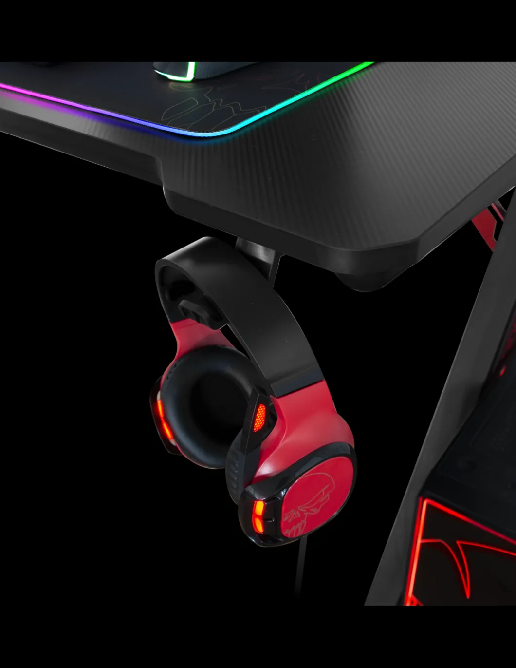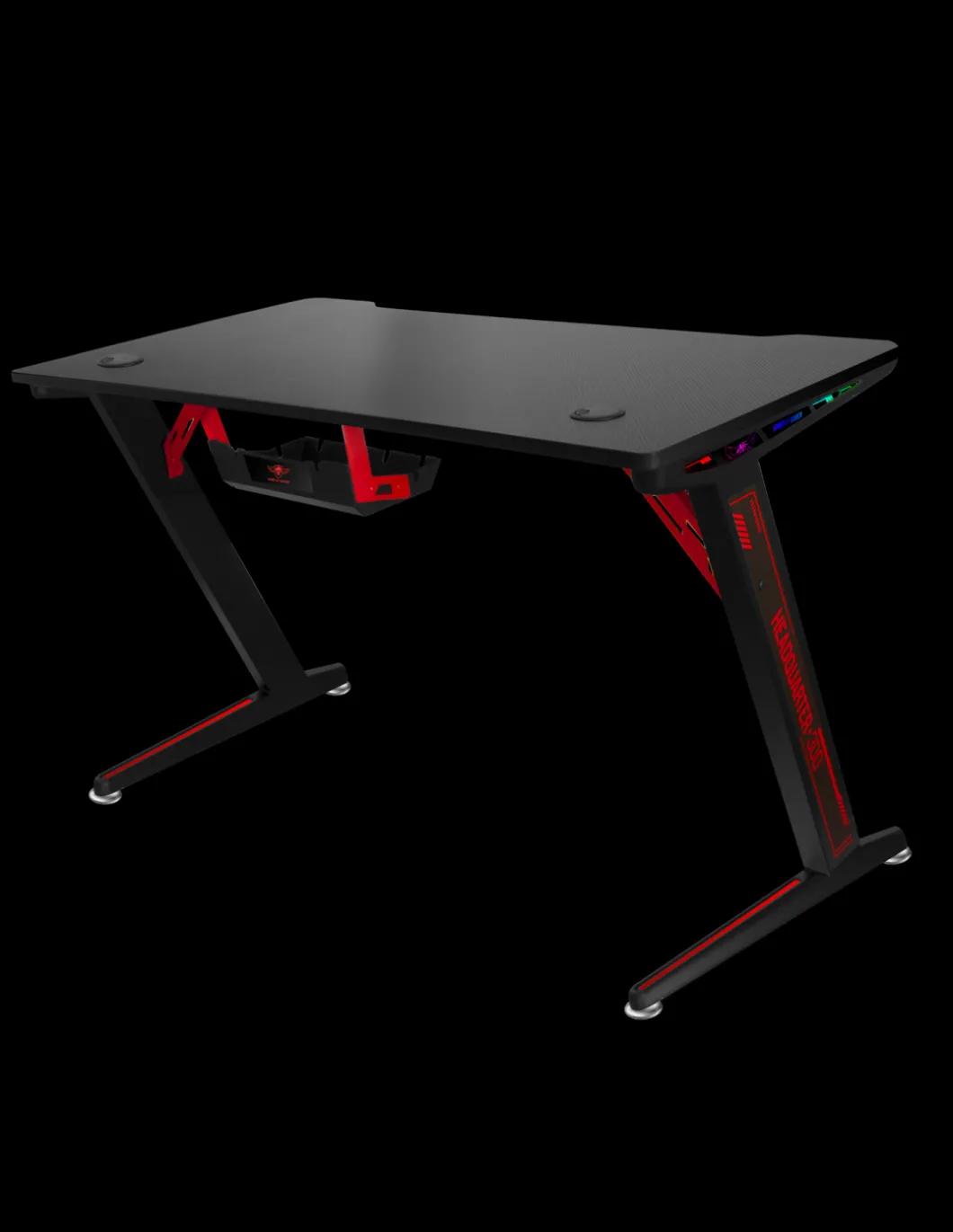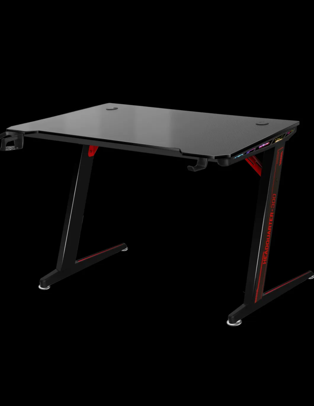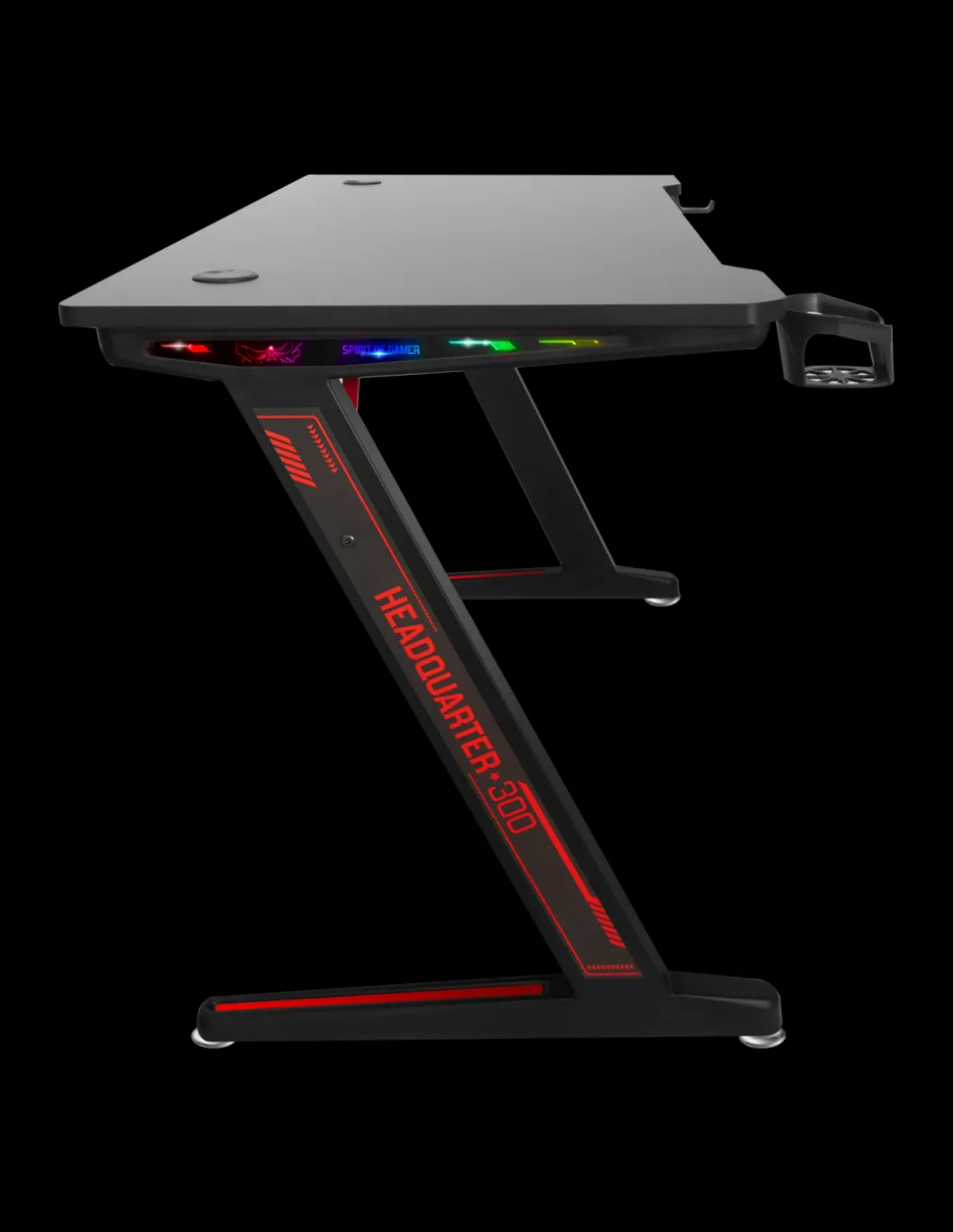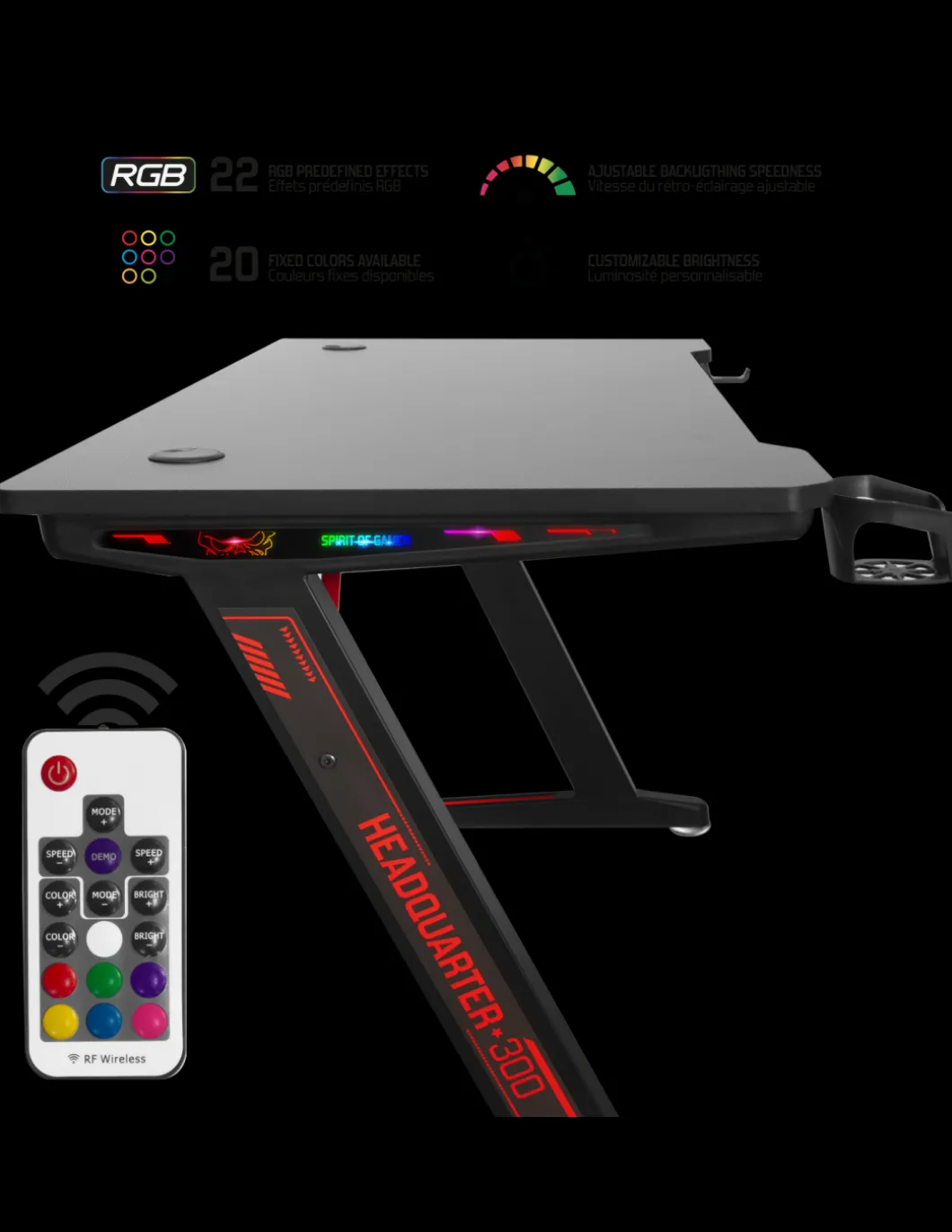 Veritable Battlefield Le Nouveau Bureau Gaming Headquarter 300 Avec Son Revetement Effet Carbon Offre Une Finition Design Et Solide Pour Accueillir Votre Setup. Sa Surface De 120 Cm * 60 Cm Est Suffisamment Grande Pour Recevoir 2 Ecrans 27 » Ou Pourquoi Pas Un Ecran Dernier Cri, Incurve De 49 ».Rgb Design : Sur Les Cotes Du Bureau, Les Pieds Integrent Des Barres Led Rgb. Equipee De La Telecommande Sans Fil, Vous Pouvez Choisir Le Retroeclairage Selon Votre Convenance. Et Pas Des Moindre Avec 22 Effets Predefinis, 20 Couleurs Fixes, Le Reglage De La Luminosite Et De La Vitesse Des Effets. Sa Mémoire Interne Enregistre Le Dernier Mode Selectionne : Game On ! Keep Calm : Votre Casque Sera Toujours A La Portee De Main Grace Au Support Inclus Et Pas Seulement ! Pour Eviter Que Votre Boisson Energetique Ne Se Retrouve Renverse Sur Votre Clavier, Nous Avons Equipe Headquarter Du Porte-Gobelet. Son Decroche Permet Meme De Deposer Un Mug 🙂 Ragequit Ready On Vous Avait Prevenu 😛 Headquarter 300 Est Solide ! Plateau En Mdf De 18 Mm D’Epaisseur, Structure En Acier Et 4 Pieds Reglables Pour Une Meilleure Stabilite.Gestion Des Cables Pour Que Votre Setup Soit Organise Et Range, Spirit Of Gamer Vous Propose Son Systeme Avance De Gestion Des Cables Pour Cacher Et Regrouper Vos Cables : Panier Fixe Sous Le Bureau, Serres-Cables Et Passes-Cables.