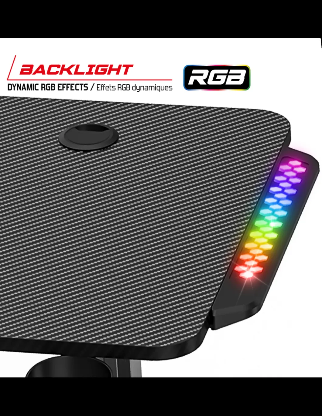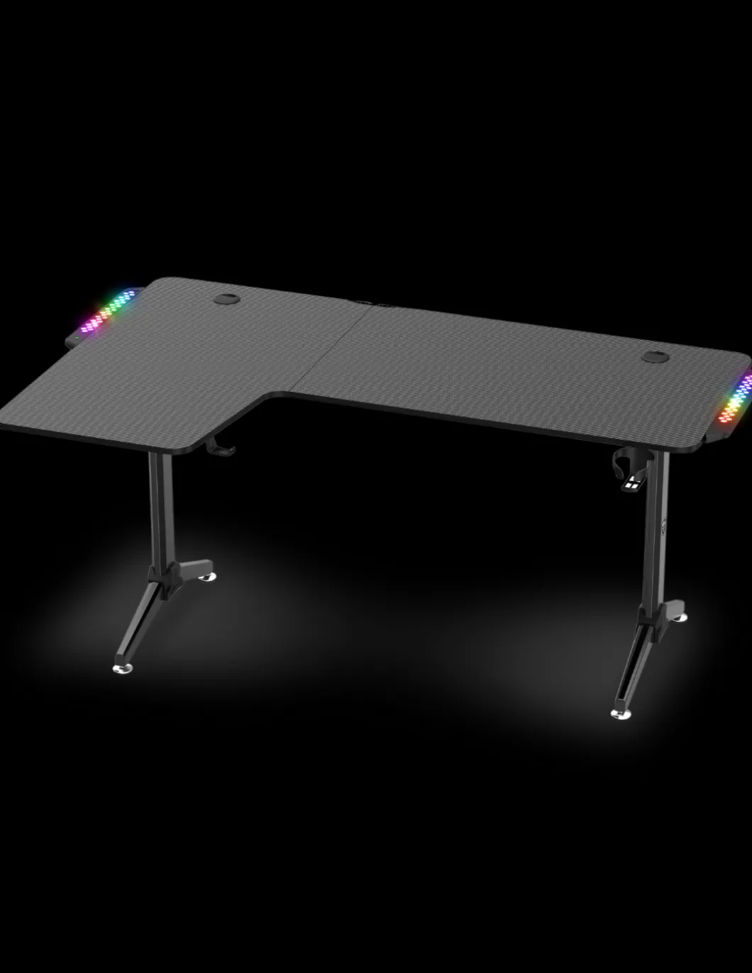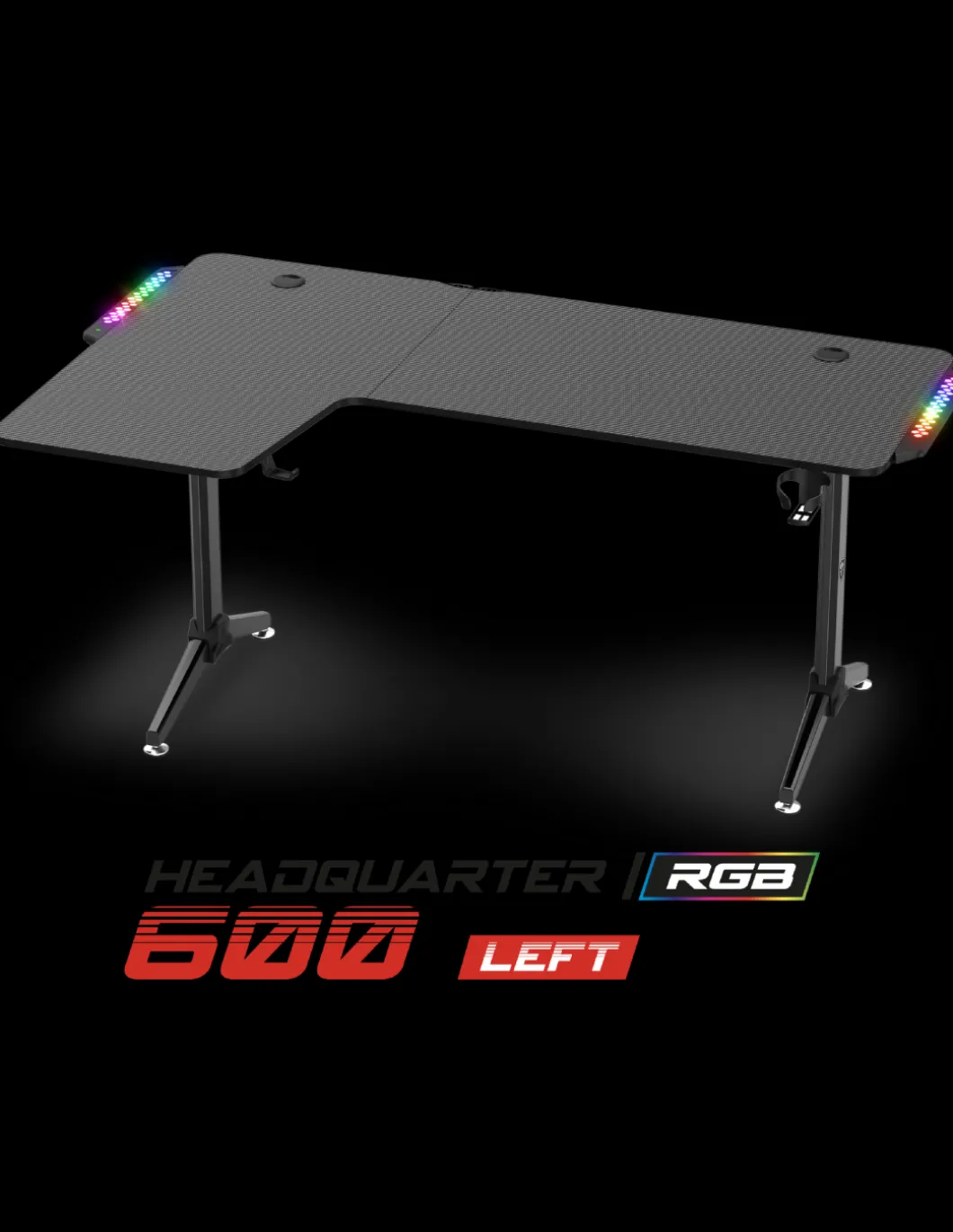 Headquarter 600 Vous Cherchez Un Bureau Gamer Pour Vous Ou Pour Votre Ado Fan De Jeux Video Headquarter 600 Est Parfait Pour Creer Un Grand Espace Dedie Aux Gaming, Streaming… Et Meme Pour Teletravailler. Le Bureau D’Angle Offre Une Grande Polyvalence D’Amenagement Pour Un, Deux Ou 3 Ecrans. Espace Xxl La Conception En Angle Du Bureau Headquarter 600 Permet D’Obtenir Une Longueur De Travail Totale De 160 Cm. Son Retour De 100 Cm Permet D’Installer Votre Setup Tout En Posant Vos Documents, Sans Craindre Le Manque De Place. D’Une Hauteur De 75Cm, Il Offre Egalement Une Assise Confortable.Robuste Avec Son Pietement En Metal Laque Noir Surmonte D’Un Plateau Effet Carbon De 16 Mm D’Epaisseur, Le Bureau D’Angle Offre Un Espace De Jeux Design Et Sobre A La Fois. Il S’Integre Ainsi Parfaitement Dans Un Salon, Dans Une Chambre, Ou Dans Un Bureau. Choisissez L’Angle Qui Vous Convient, Headquarter 600 Est Disponible Avec Un Retour Droit Ou Gauche. Neon, Chroma, Tempo… Le Bureau Inclus Un Kit De Retroeclairage Rgb Facile A Installer. Il S’Alimente Directement Via La Prise Usb De Votre Ordinateur. Une Fois Branche, Vous Pouvez Selectionnez A L’Aide De Son Bouton Sensitif : Une Couleur Statique, Un Des Effets Rgb Dynamiques Ou Le Mode Tempo : Les Led Reagissent A Votre Musique, Au Son De Votre Jeu. Neon, Chroma, Tempo… Le Bureau Inclus Un Kit De Retroeclairage Rgb Facile A Installer. Il S’Alimente Directement Via La Prise Usb De Votre Ordinateur. Une Fois Branche, Vous Pouvez Selectionnez A L’Aide De Son Bouton Sensitif : Une Couleur Statique, Un Des Effets Rgb Dynamiques Ou Le Mode Tempo : Les Led Reagissent A Votre Musique, Au Son De Votre Jeu.All In One Le Bureau Est Equipe De Nombreux Accessoires. Un Support Pour Avoir Son Casque Gamer A Portee De La Main. Un Porte-Gobelet Pour Ne Jamais Renverser Sa Boisson En Cas De Rage Quit ! Et Pour Un Espace Toujours Clean, Le Plateau Integre 2 Passes-Cables Ronds Et Dessous Un Panier Pour Ranger Egalement Vos Cables Et Multiprises…