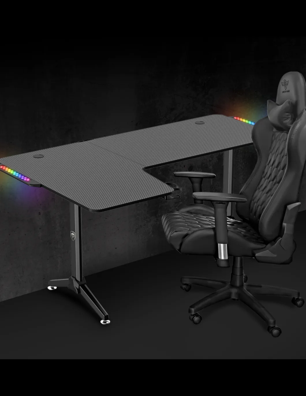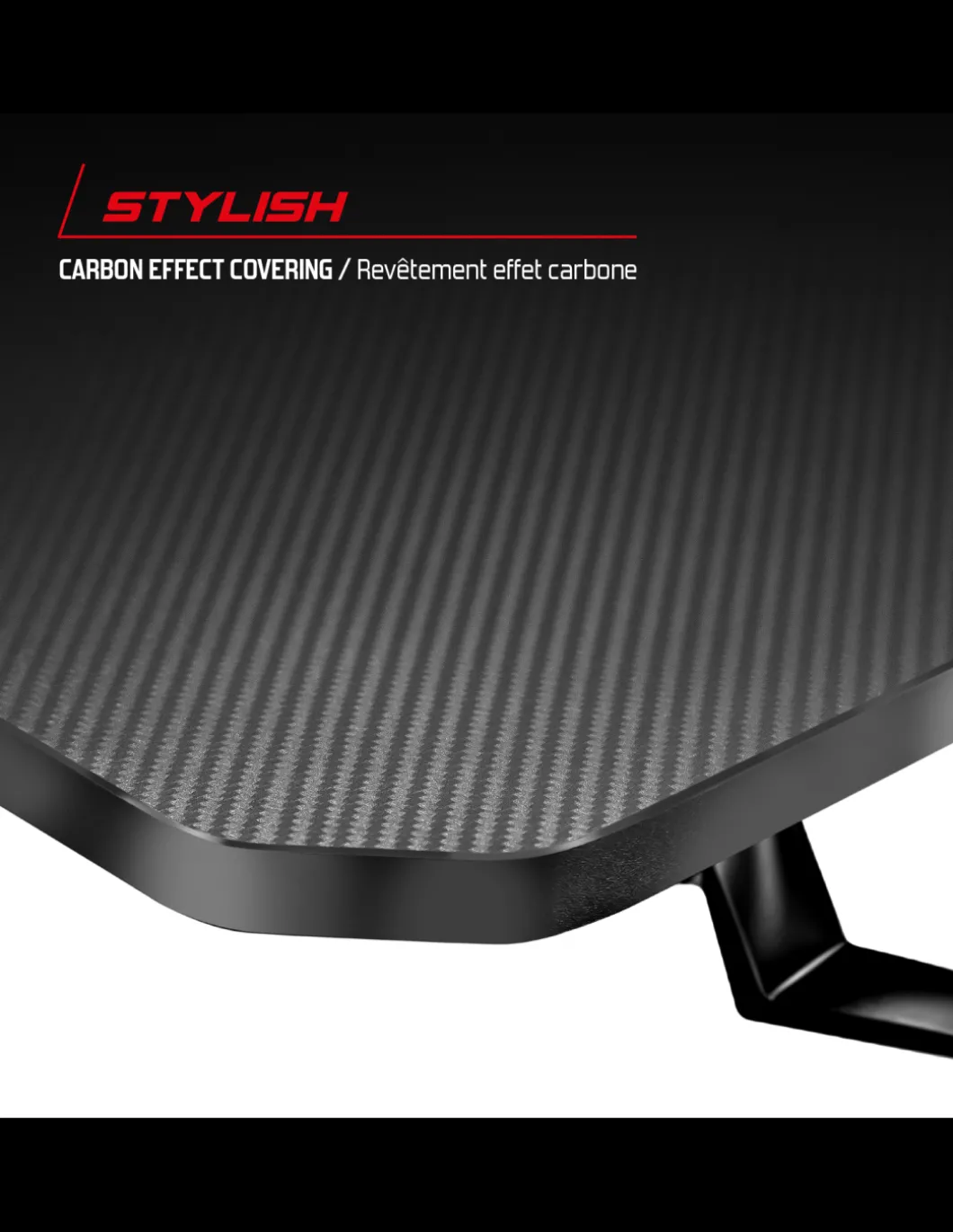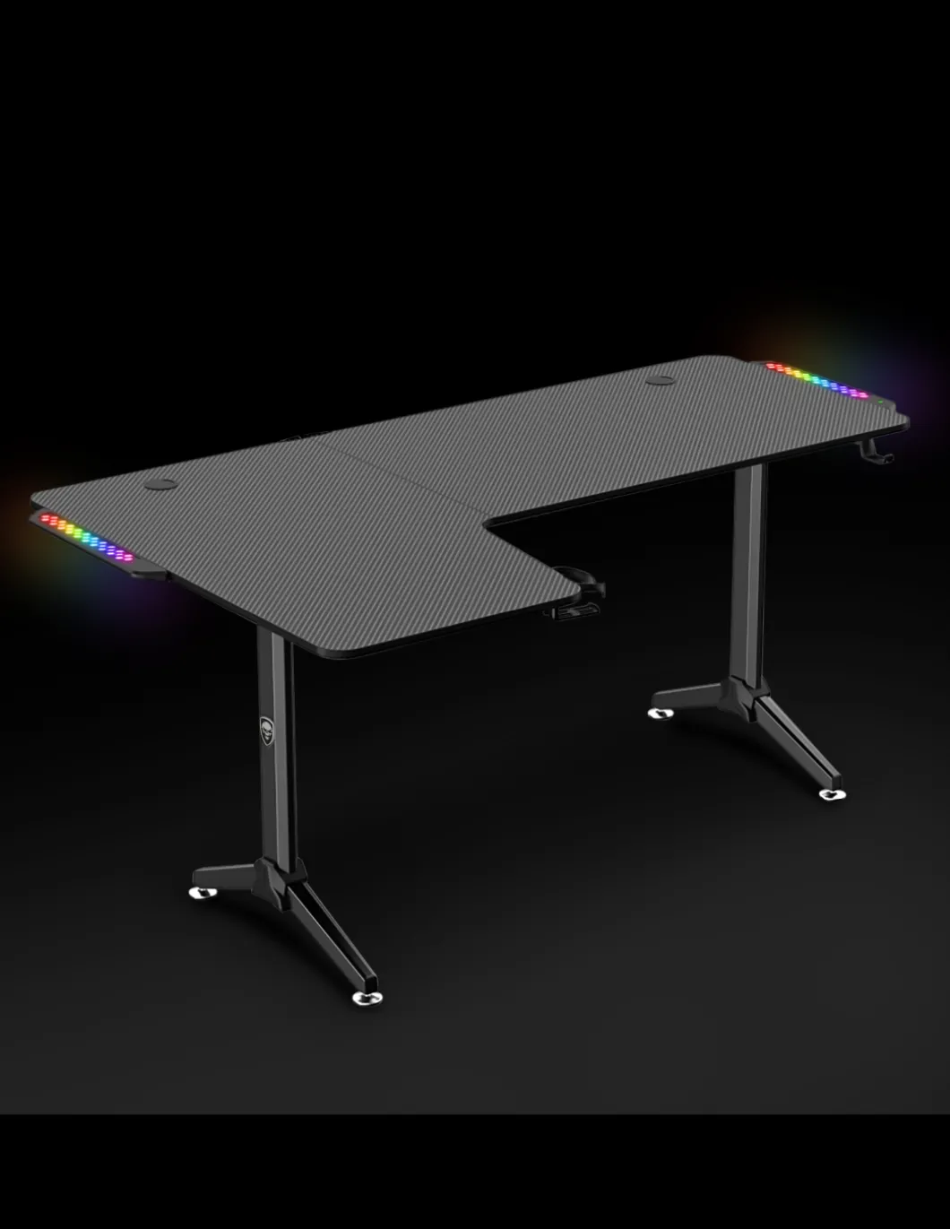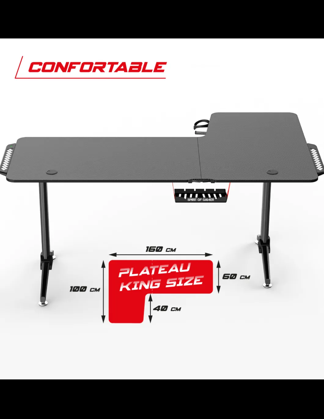 Headquarter 600 Vous Cherchez Un Bureau Gamer Pour Vous Ou Pour Votre Ado Fan De Jeux Video Headquarter 600 Est Parfait Pour Creer Un Grand Espace Dedie Aux Gaming, Streaming… Et Meme Pour Teletravailler. Le Bureau D’Angle Offre Une Grande Polyvalence D’Amenagement Pour Un, Deux Ou 3 Ecrans. Espace Xxl La Conception En Angle Du Bureau Headquarter 600 Permet D’Obtenir Une Longueur De Travail Totale De 160 Cm. Son Retour De 100 Cm Permet D’Installer Votre Setup Tout En Posant Vos Documents, Sans Craindre Le Manque De Place. D’Une Hauteur De 75Cm, Il Offre Egalement Une Assise Confortable.Robuste Avec Son Pietement En Metal Laque Noir Surmonte D’Un Plateau Effet Carbon De 16 Mm D’Epaisseur, Le Bureau D’Angle Offre Un Espace De Jeux Design Et Sobre A La Fois. Il S’Integre Ainsi Parfaitement Dans Un Salon, Dans Une Chambre, Ou Dans Un Bureau. Choisissez L’Angle Qui Vous Convient, Headquarter 600 Est Disponible Avec Un Retour Droit Ou Gauche. Neon, Chroma, Tempo… Le Bureau Inclus Un Kit De Retroeclairage Rgb Facile A Installer. Il S’Alimente Directement Via La Prise Usb De Votre Ordinateur. Une Fois Branche, Vous Pouvez Selectionnez A L’Aide De Son Bouton Sensitif : Une Couleur Statique, Un Des Effets Rgb Dynamiques Ou Le Mode Tempo : Les Led Reagissent A Votre Musique, Au Son De Votre Jeu. Neon, Chroma, Tempo… Le Bureau Inclus Un Kit De Retroeclairage Rgb Facile A Installer. Il S’Alimente Directement Via La Prise Usb De Votre Ordinateur. Une Fois Branche, Vous Pouvez Selectionnez A L’Aide De Son Bouton Sensitif : Une Couleur Statique, Un Des Effets Rgb Dynamiques Ou Le Mode Tempo : Les Led Reagissent A Votre Musique, Au Son De Votre Jeu.All In One Le Bureau Est Equipe De Nombreux Accessoires. Un Support Pour Avoir Son Casque Gamer A Portee De La Main. Un Porte-Gobelet Pour Ne Jamais Renverser Sa Boisson En Cas De Rage Quit ! Et Pour Un Espace Toujours Clean, Le Plateau Integre 2 Passes-Cables Ronds Et Dessous Un Panier Pour Ranger Egalement Vos Cables Et Multiprises…