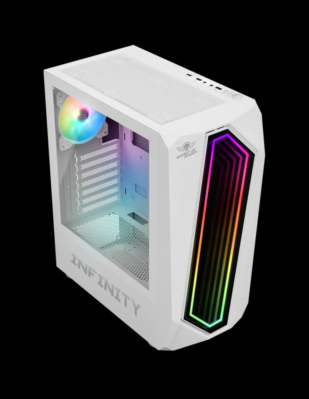 Facade Rgb Miroir Infinity Est Un Incroyable Chassis Pour Les Gamers, Les Passionnes De Pc Qui Cherchent A Construire Un Systeme De Jeu Haute Performance Avec Une Infinite De Possibilite. Son Design Epure Et Elegant Attire Immediatement L’Attention Surtout Avec Sa Facade Miroir Qui Offre Une Retroeclairage Rgb Infini .Configuration Extreme L’Interieur Du Chassis Est Bien Pense Pour Offrir Une Flexibilite Maximale Lors De La Configuration De Votre Systeme. Il Prend En Charge Les Cartes Meres Atx, Micro-Atx Et Mini-Itx, Les Cartes-Graphiques Jusqu’A 315 Mm Ainsi Que Les Radiateurs A Air De 165 Mm Ou Watercooling Jusqu’A 240 Mm Max. Il Y A Egalement Suffisamment D’Espace Avec Des Supports Pour Jusqu’A 2 Disques Durs 3,5 Pouces Et 2 Disques Ssd 2,5 Pouces.Refroidissement Optimal : En Termes De Refroidissement, Le Chassis Infinity Est Equipe D’Un Ventilateur De 120 Mm A L’Avant Et Un Ventilateur Argb De 120 Mm A L’Arriere, Offrant Une Circulation D’Air Optimale Pour Votre Systeme. Il Y A Egalement Des Options Pour Installer Des Ventilateurs Supplementaires Pour Un Meilleur Refroidissement Si Necessaire.Personnalisation Illimitee Le Chassis Est Equipe D’Un Retroeclairage Rgb Personnalisable Qui Ajoute Une Touche De Style A Votre Config’. Il Vous Permet De Choisir Parmi Une Variete De Couleurs Et D’Effets Predefinis Pour Creer L’Ambiance De Jeu Parfaite : Plus De 60 Modes. Avec Son Sa Technologie Argb, Le Retroeclairage Peut Etre Synchronise Avec Votre Carte Mere Pour Creer Des Effets Encore Plus Impressionnants. Infinity Dark Ou Artic Edition Disponible En Version Noir Ou Blanc, Le Chassis Est Un Excellent Choix Pour Le Gamers A La Recherche D’Un Look Elegant, D’Une Performance Exceptionnelle Et D’Une Grande Flexibilite Pour La Configuration De Leur Systeme. Infinity Offre Un Grand Nombre De Fonctionnalites Pour Un Excellent Rapport Qualite-Prix. Avec Ses Options De Personnalisation « Illimitees », Le Retroeclairage Rgb Du Chassis Vous Permet De Creer Un Systeme De Jeu Unique Qui Se Demarque Vraiment.