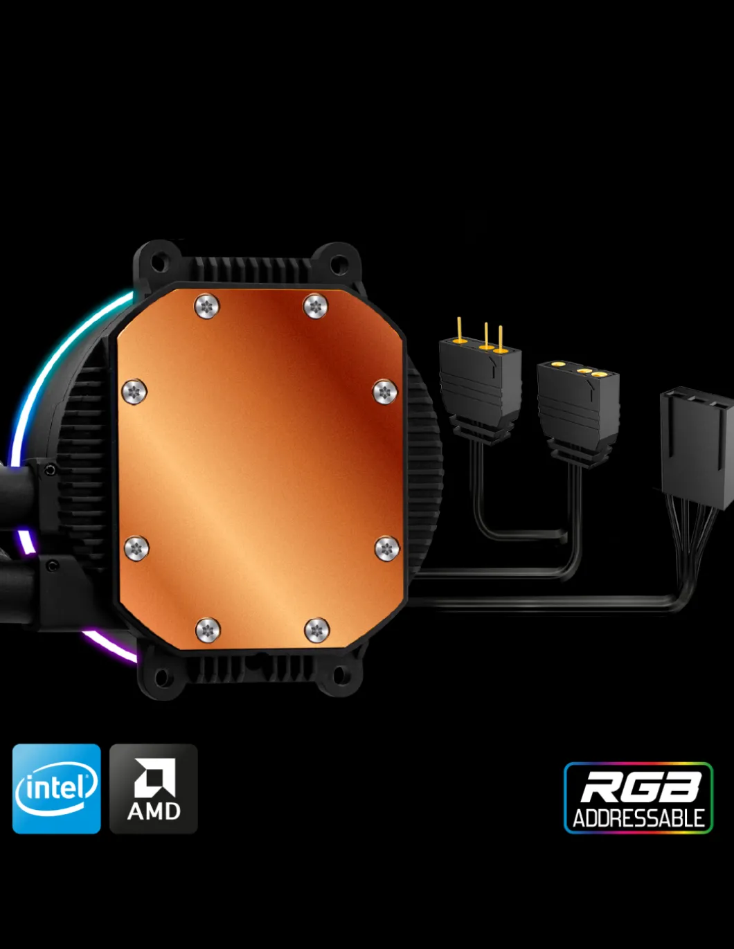 All In One ! Liquidforce 240 Mm Argb Est Un Watercooling Silencieux Tout-En-Un Concu Pour Refroidir Efficacement N’Importe Quel Processeur Haut De Gamme Amd Ou Intel. Ce Kit Est Compose D’Un Waterblock Rgb, Un Radiateur Equipe De 2 Ventilateurs De 120 Mm Pwm Et Rgb.Performance Optimale : Le Processeur Est L’Un Des Composants Qui Emet Le Plus De Chaleur Dans Votre Boitier. Installer Un Kit Liquidforce, Vous Permettra De Refroidir Efficacement Votre Cpu Et De Preserver Ainsi Votre Pc, Ses Composants Et D’Augmenter Ses Performances. Liquid Force Est Compatible Avec Les Cartes-Mere Suivantes : Intel, Sockets : 2011-V3/2011/1151/1150/1155 Et Amd, Sockets : Am4/Am3/Am3+/Fm2+/Fm2/Fm1.Comment Ca Marche C’Est Simple ! On Place La Pompe Sur Le Processeur A L’Aide D’Un Des Supports Amd Ou Intel Inclus. Le Bloc En Cuivre Va Accelerer La Conductivite Thermique Et La Dissipation De La Chaleur. Pour Refroidir Le Bloc, On Fait Circuler Un Liquide A L’Aide D’Une Pompe. Celle-Ci Va Egalement Recycler Le Liquide Chaud Vers Le Radiateur Et Ses Ventilateurs Airforce Pour Qu’Il Soit Refroidi Et Le Renvoyer A Nouveau Vers Votre Cpu.Airforce 120 Mm Pwm Le Refroidissement Du Radiateur Est Optimise Par Ses 2 Ventilateurs Airforce 120 Mm Pwm (4 Broches). Que Signifie Pmw C’Est L’Abreviation De « Pules Width Modulation » (Modulation A Duree D’Impulsion). Contrairement Aux Ventilateurs Standards (3 Broches) Dont La Rotation Est Constante, La Technologie Pwm Permet Une Rotation Plus Rapide Ou Plus Lente En Fonction Des Besoins De Votre Systeme. Pour Resumer, Si Votre Systeme A Besoin D’Etre Refroidit Alors Le Ventilateur Va Tourner A Plein Regime Et A Contrario Plus Lentement Si L’Activite De Votre Pc Est Faible.Rgb Adressable : Non Seulement Liquidforce 240 Mm Offre Une Refroidissement Haute Performance Mais Aussi Une Solution De Retro-Eclairage Personnalisable Du Ventilateur Et De Son Waterblock. En Effet, La Connectique Rgb Adressable 3 Pins / 5V Incluse Est Compatible Avec Les Cartes Meres : Asus Aura Sync, Gigabyte Rgb Fusion, Msi Mysticlight Sync Et Asrock Polychrome Sync, Utilisez Le Logiciel De Votre Carte-Mere Pour Prendre La Main Sur Les Couleurs De Votre Setup..