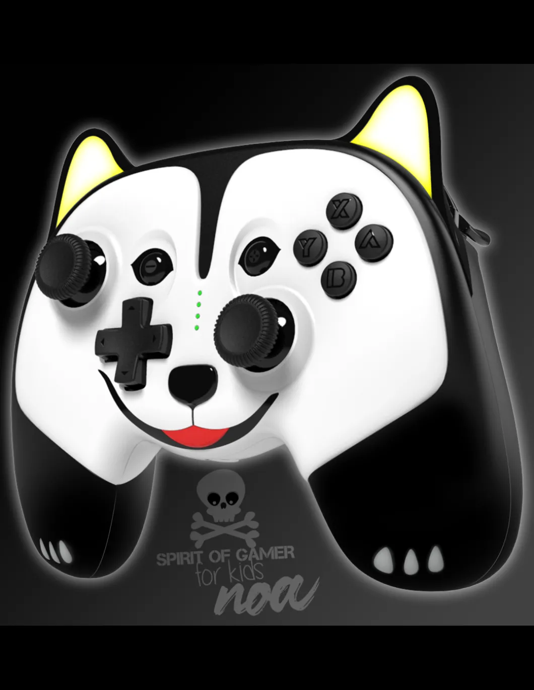 Spirit Of Gamer For Kids ! Vous Presente Noa 🙂 Une Nouvelle Manette Sans Fil Offrant Une Prise En Main Et Un Design Specialement Concu Pour Les Enfants (Et Pour Les Grands Aussi.) Avec Ses Oreilles Retroeclairees. Sans Fil : La Manette Est Bluetooth Et Offre Une Distance De Fonctionnement Jusqu’A 10 Metres. Avec Sa Batterie Lithium Rechargeable, Elle Offre Une Autonomie Confortable De 10 Heures. .Macro Programmable : 2 Boutons Speciaux Au Dos De La Manette Sont Parametrables Pour Enregistrer Votre Combinaison De Touches.Fonction Turbo : Et Pourquoi Pas Assigner La Fonction Turbo A Un Bouton Pour Repeter 5, 12 Et Meme Jusqu’A 20 Fois Le Bouton Selectionne. Gameplay Noa Integre Toutes Les Fonctionnalites Pour Jouer : Capteur De Mouvement, Vibrations Hd Ajustables. Il Est Meme Possible De Brancher Son Casque Sur La Manette.