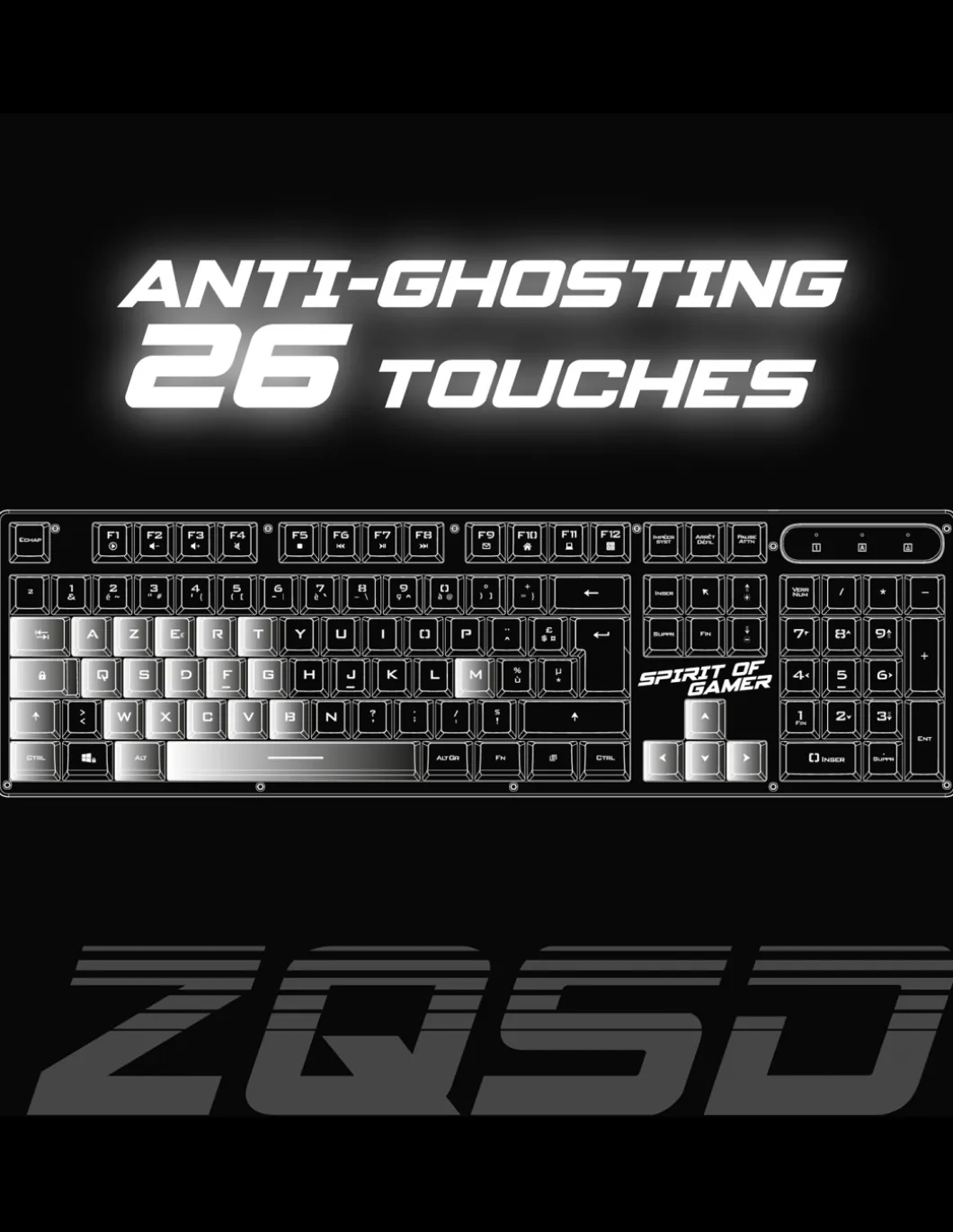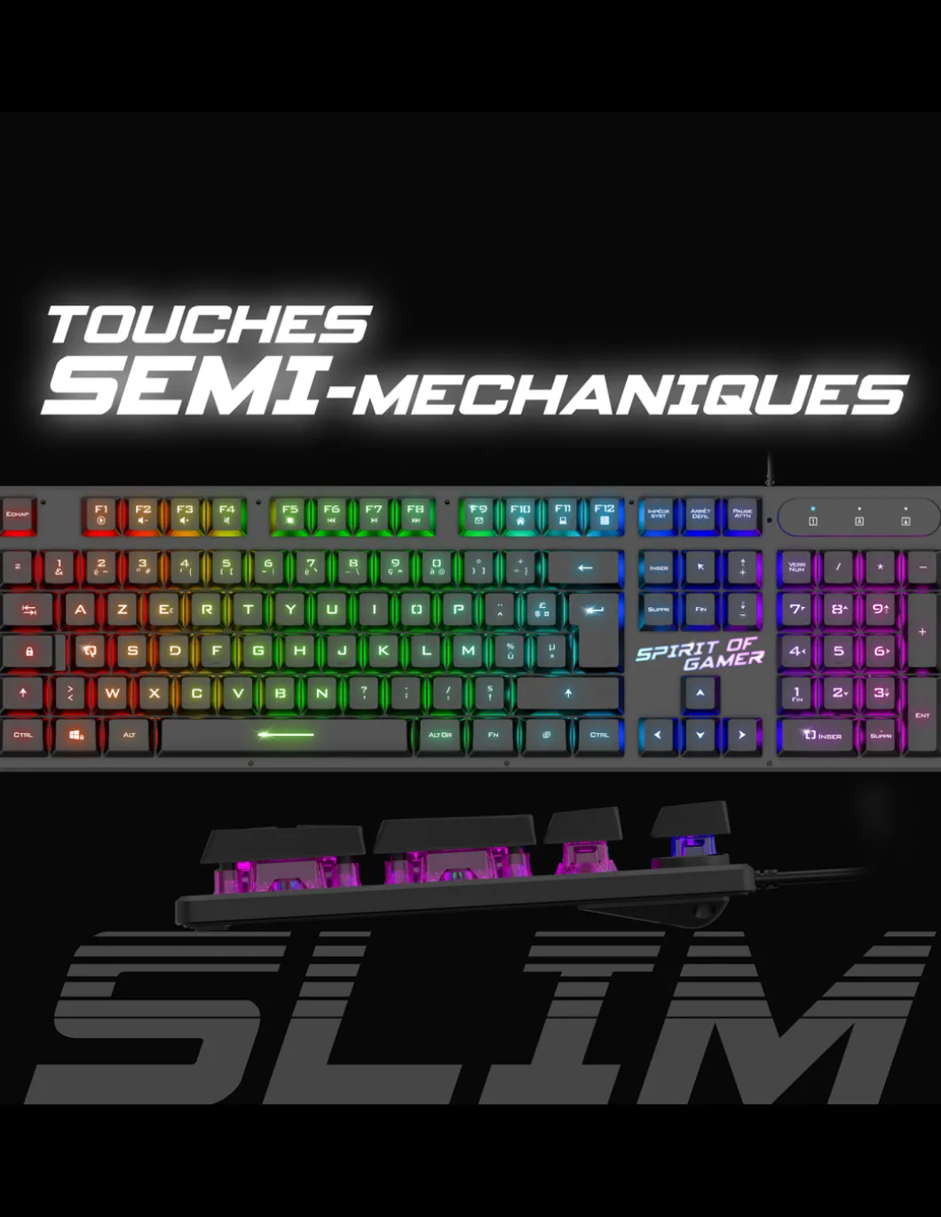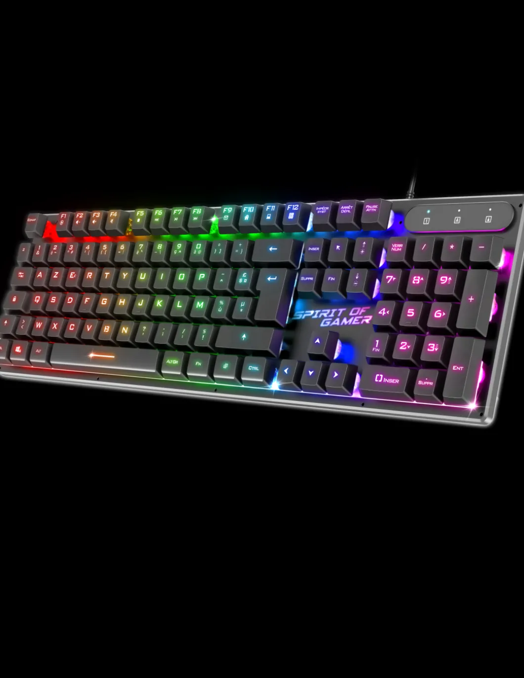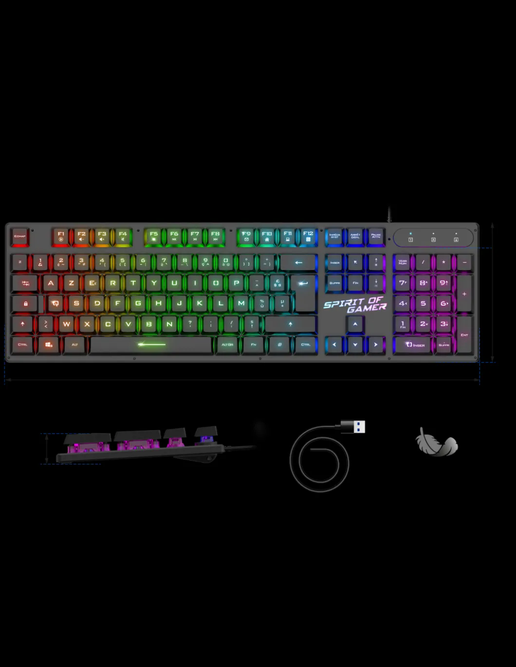 We Are Gamers : Le Clavier Gamer Est Bien Plus Qu’Un Simple Accessoire, Il Est Un Element Essentiel Pour Une Experience De Jeu Optimale. Specialement Concu Pour Repondre Aux Besoins Des Joueurs, Pro-K1 Offre Une Reactivite Et Une Precision Superieures Qui Vous Permettent De Donner Le Meilleur De Vous-Meme Lors De Vos Parties Intenses. Avec Ses 105 Touches Semi-Mecaniques, Le Clavier Pro-K1 Est Fait Pour Vous. No Ghost Le Clavier Pro-K1 Avec 26 Touches Anti-Ghosting Est Specialement Concu Pour Repondre Aux Besoins Des Joueurs Les Plus Exigeants. Grace A La Technologie Anti-Ghosting, Chaque Pression De Touche Est Enregistree Avec Precision, Meme Lorsque Plusieurs Touches Sont Enfoncees Simultanement, Vous Offrant Ainsi Une Reactivite Et Une Fluidite Maximales Pendant Vos Sessions De Jeu Intenses.Rgb By Spirit : Avec Le Pro-K1, Vous Beneficiez D’Une Visibilite Optimale Des Touches Et Du Chassis, Ce Qui En Fait Un Allie Redoutable De Jour Comme De Nuit. Le Clavier Est Dote D’Un Retroeclairage Rgb 3 Modes : Rainbow, Breathing Et Heartbeat, Ce Qui Vous Permet De Personnaliser Vos Preferences En Matiere D’Eclairage. De Plus, Le Logo Spirit Est Egalement Retroeclaire, Ce Qui Ajoute Une Touche D’Esthetique A Votre Setup.Work Hard : Le Clavier Pro-K1 Est Concu Pour Resister Aux Efforts Intenses. Sa Conception Solide Et Robuste Assure Une Durabilite Exceptionnelle. Les Touches Sont Specialement Concues Pour Resister A Des Milliers D’Heures De Jeu Intense, Tandis Que La Base Antiderapante Maintient Fermement Le Clavier En Place Meme Lors Des Sessions De Jeu Les Plus Animees.Play Hard : Ne Perdez Plus Le Fil De Votre Partie, Pro-K1 Vous Offre Un Confort De Jeu Optimal Avec Son Mode Play. Une Fonction De Verrouillage Du Menu Contextuel Windows Qui Empeche La Sortie Accidentelle Vers Le Bureau. Et Entre Deux Parties, Les 12 Raccourcis Multimedia Par Combinaison De Touche Vous Permettront D’Acceder Directement A Plusieurs Fonctionnalites ! Demarrez Votre Playlist Preferee, Lancez Votre Navigateur Internet…