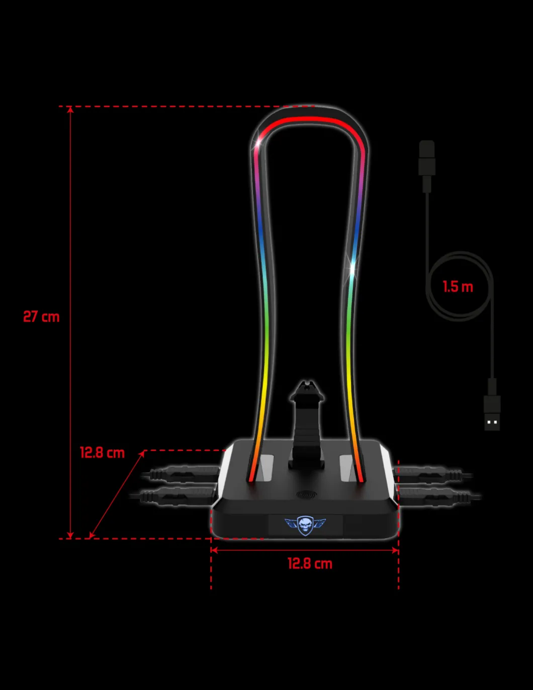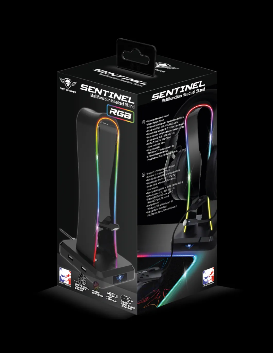 Organisez Votre Setup : Avec Le Support De Casque Sentinel Universel Avec Ses 27 Cm De Hauteur, Il Permet De Ranger Et D’Avoir A Portee De Main Son Casque. Sa Base Est Stable L’Empeche De Se Deplacer Grace Aux Patins En Caoutchouc Ou De Basculer Lors De L’Utilisation Grace Aux Lestes Integres.Prenez Le Controle : Profitez D’Une Personnalisation Rgb Avec Ses 11 Effets De Retroeclairage Predefinis : Neon, Chroma, Breathing… Choisissez Le Mode Qui Vous Convient Avec Son Bouton Sensitif « Fingerprint ».Hub 4 Ports Usb 2.0 : Vous Pouvez Brancher Au Plus Pres De Votre Setup : Votre Souris, Clavier… Transferer Les Fichiers De Votre Clef Usb Et Meme Recharger Votre Smartphone ! Conception Ergonomique : Equipez D’Un Guide Cable Amovible « Bungee », Il Permet De Deplacer Votre Souris En Toute Liberte Et D’Avoir La Sensation D’Utiliser Une Souris Sans Fil En Surelevant Son Cable ! Le Bras En Silicone De Sentinel Est Compatible Avec Les Cables En Caoutchouc, Tresses Ou Paracordes.