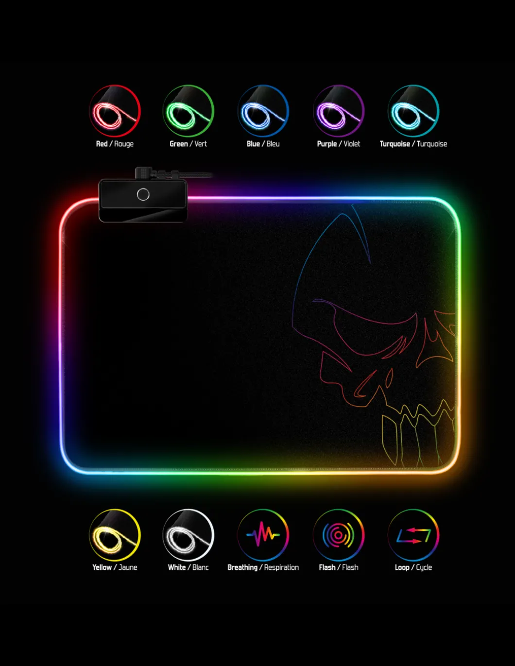 Mouvements Fluides : Les Tapis De Souris Darskull Rgb Offrent Une Surface Textile En Micro-Maille. Un Revetement Ultra Fin Specialement Concu Et Etudie Pour Vous Garantir : Rapidite, Fluidite Et Une Meilleure Precision Des Mouvements De Votre Souris. Darskull Rgb Medium : Le Tapis Darskull Rgb Taille M Mesure 30 X 23 Centimetres. Une Epaisseur De 3 Millimetres. Il Offre Assez D’Espace Pour Accueillir Votre Souris.Rgb Backlight : La Serie Rgb Est Equipe D’Un Retro-Eclairage A 360°. Choisissez Parmi 10 Modes : 3 Effets Rgb Dynamiques (Neon, Flash, Loop) Ou L’Une Des 7 Couleurs Statiques (Rouge, Vert, Bleu, Violet, Turquoise, Jaune, Blanc).Play Hard : Developpe Et Eprouve Par Notre Team De Gamers, Les Tapis Darksull Sont Compatibles Avec Les Capteurs Optiques Et Laser.Base Antiderapante : Sa Base En Caoutchouc Antiderapante Permet De Maintenir Le Tapis Fermement Sur Toute Les Surfaces. Resistant Et Lavable, Une Simple Eponge Ou Un Linge Humide Vous Permettra De Le Nettoyer.