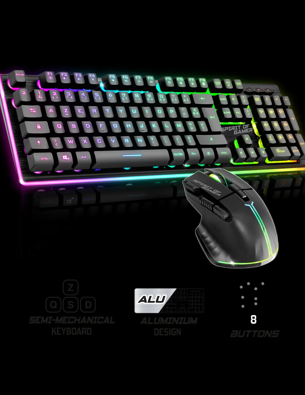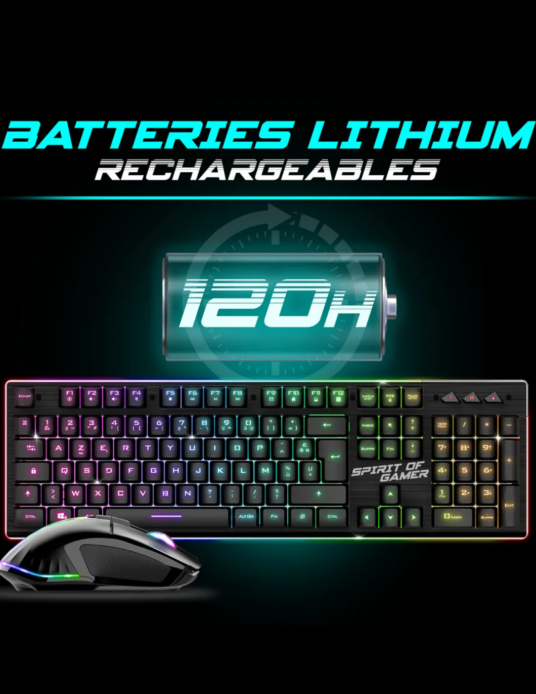 Wireless : Pack Gamer Ultimate 600 Sans Fil Ultime Concu Pour Les Passionnes De Jeu Qui Recherchent Une Performance Sans Compromis. Sa Connexion Sans Fil Rf 2.4 Ghz Garantit Une Liberte De Mouvement Allant De 6 A 10 Metres. 120 Heures ! Avec Des Batteries Lithium Puissantes Et Des Temps De Charge Rapides, Ce Pack Est Prêt À Vous Accompagner Au Quotidien. Les Deux Peripheriques Sont Dotes D’Une Autonomie De Batterie Exceptionnelle Permettant Des Heures De Jeu Intensif. Vous Pouvez Vous Plonger Dans Des Sessions De Jeu Intenses Sans Vous Soucier De La Batterie.Rapidfire : La Souris Sans Fil Ultimate 600 Est Le Partenaire Parfait Pour Completer Votre Arsenal De Jeu. Le Capteur Pixart 3312 Offre Une Resolution Reglable Sur 3 Niveaux (1200, 2400, 4800 Dpi), Assurant Une Precision Exceptionelle Parfaite Pour Tous Les Types De Jeux. Avec 8 Boutons, Dont 1 Rapidfire, L’Acceleration A 10 G Et Une Vitesse De 4000 Fps, Cette Souris Repondra A Vos Moindres Mouvements. Avec Son Retro-Eclairage Rgb Rainbow, La Souris Ajoute Une Ambiance Immersive A Vos Sessions De Jeu.Aluminium : Le Clavier Sans Fil Ultimate 600 Dark Offre Une Experience De Frappe Semi-Mecanique Reactive Et Des Raccourcis Multimedias Pratiquesprofitez Du Confort De Jeu Avec Le Reglage En Hauteur Ajustable Du Clavier Et Sa Construction En Aluminium Robuste. Le Retro-Eclairage Rgb Rainbow Ajoute Une Touche Visuelle Design.Ultime : En Resume, Le Pack Gamer Sans Fil Ultimate 600 Vous Propose Un Clavier Et Une Souris Exceptionnels Pour Des Performances De Jeu Incomparables. Avec Une Autonomie De Batterie Impressionnante Et Une Construction Solide, Ce Pack Est Le Choix Ideal Pour Les Joueurs Exigeants Qui Veulent Vivre Une Experience De Jeu Ultime.